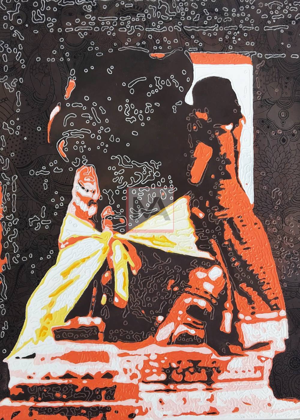 This painting captures the tender act of whispering wishes into Nandhi’s ears — a timeless gesture of faith and devotion. The young girl embodies purity and hope, while the serene atmosphere radiates calm and positivity. It gently reminds viewers that innocence, trust, and heartfelt belief hold the quiet power to turn dreams into reality.