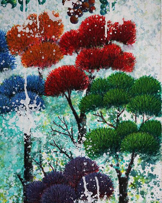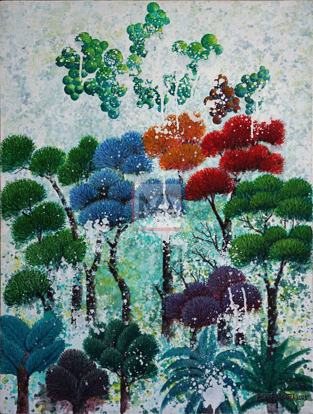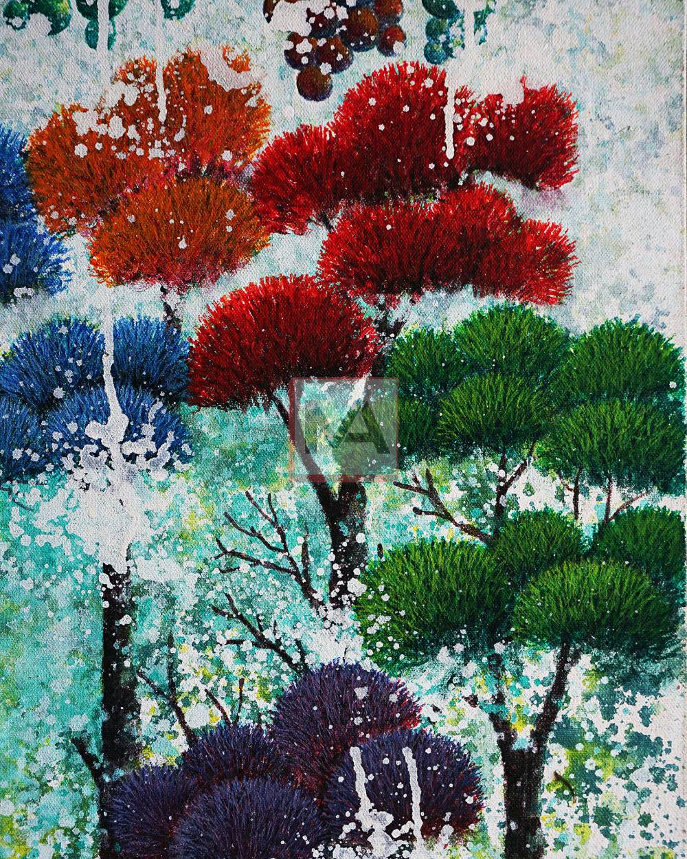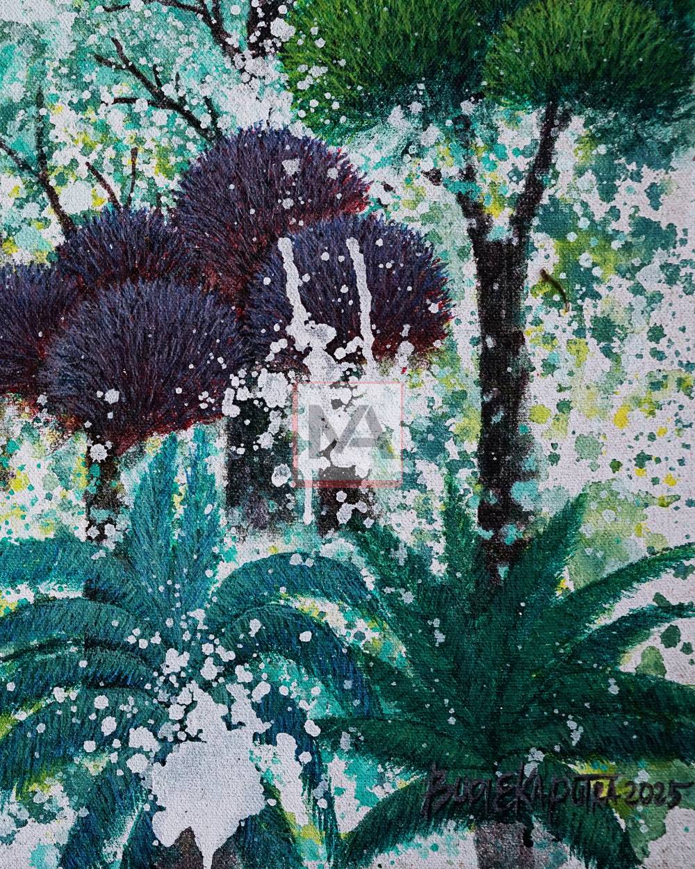 This work reflects the essence of life, where fruit symbolizes knowledge that can be used for both good and harm. It emphasizes the need for reflection to preserve environmental and life quality. Forests, as vital ecosystems, regulate rivers to prevent floods and droughts—but with every hectare cut down, our hope for conservation diminishes. Through this painting, the artist reminds us that maintaining nature’s balance is key to safeguarding our shared future.