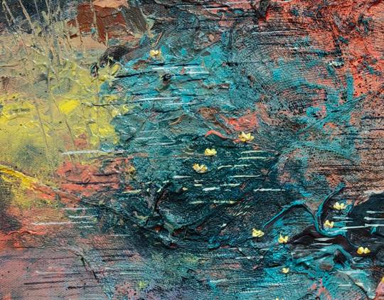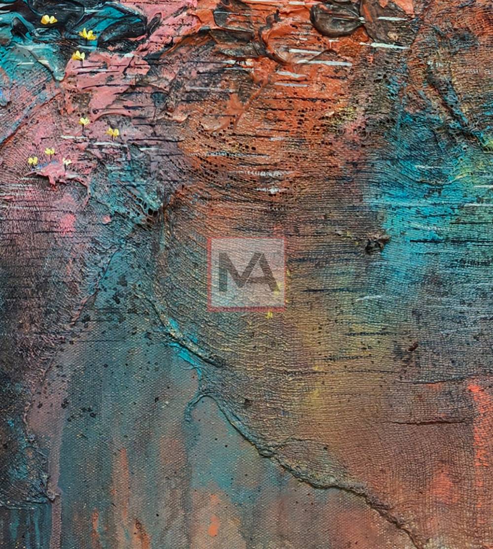Interwoven textures and layered forms reflect the depth of life’s roots, holding strength, hope, and renewal within. Refreshing hues of turquoise, aqua, and soft pastels blend seamlessly with warm, earthy tones, creating a sense of lightness and positivity. The painting radiates calm energy, growth, and a serene, uplifting connection with nature and the soul.