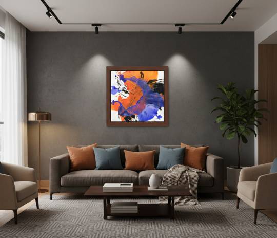 Liquid Echo is a dynamic exploration of fluid energy, where boundaries dissolve into rhythmic flow. Bold splashes crest like sudden waves, meeting deep pools of color that ripple outward with organic grace. The composition captures the precise moment of collision—where dense pigments transform into ethereal washes and delicate droplets scatter like cosmic spray. Striking black accents anchor the movement, sharpening contrast and heightening the weightless sweep of blue arches. Translucent layers reveal hidden depth, suggesting a liquid world where color resonates beyond the surface. Expanses of white space act as a quiet breath, allowing the pigments’ kinetic power to fully unfold. The work captures a fleeting resonance—a motion that refuses stillness.
