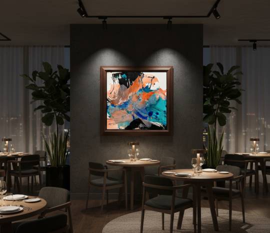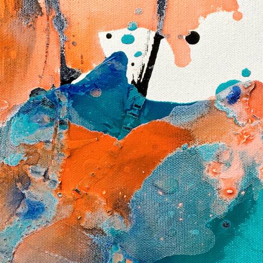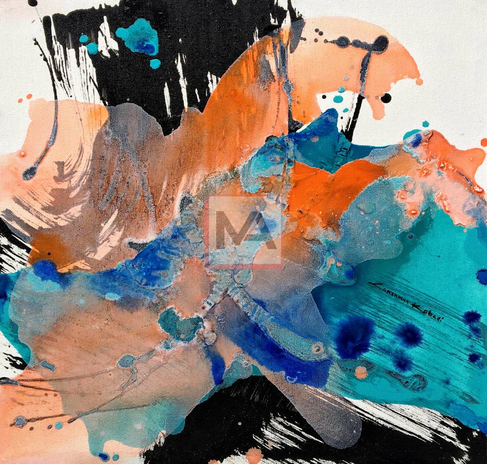 Liquid Echo is a dynamic exploration of fluid energy, where boundaries dissolve into rhythmic flow. Bold splashes crest like sudden waves, meeting deep pools of color that ripple outward with organic grace. The composition captures the precise moment of collision—where dense pigments transform into ethereal washes and delicate droplets scatter like cosmic spray. Striking black accents anchor the movement, sharpening contrast and heightening the weightless sweep of blue arches. Translucent layers reveal hidden depth, suggesting a liquid world where color resonates beyond the surface. Expanses of white space act as a quiet breath, allowing the pigments’ kinetic power to fully unfold. The work captures a fleeting resonance—a motion that refuses stillness.