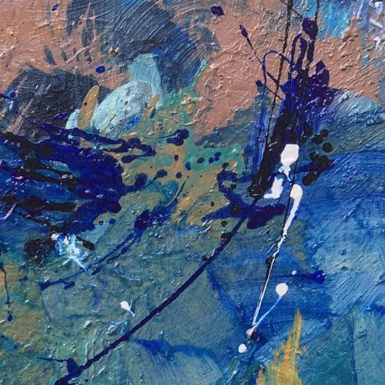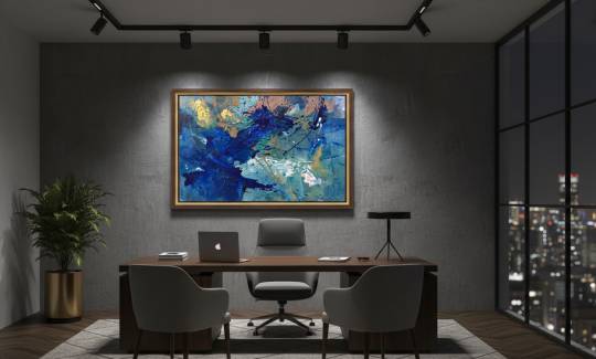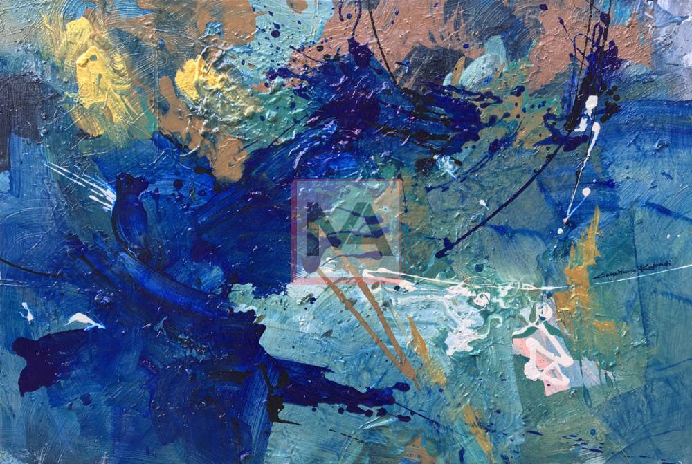 Oceanic Transcendence captures the boundless energy and meditative depth of the sea through expressive abstraction. Layered movements and fluid tonal transitions evoke immersion—where surface and depth dissolve into one continuous flow. The composition balances turbulence and serenity, reflecting the ocean’s dual nature of power and stillness. Expansive gestures and organic forms suggest an emotional journey beyond the visible horizon. The work invites viewers into a state of release, reflection, and elevation—like drifting into infinite blue.