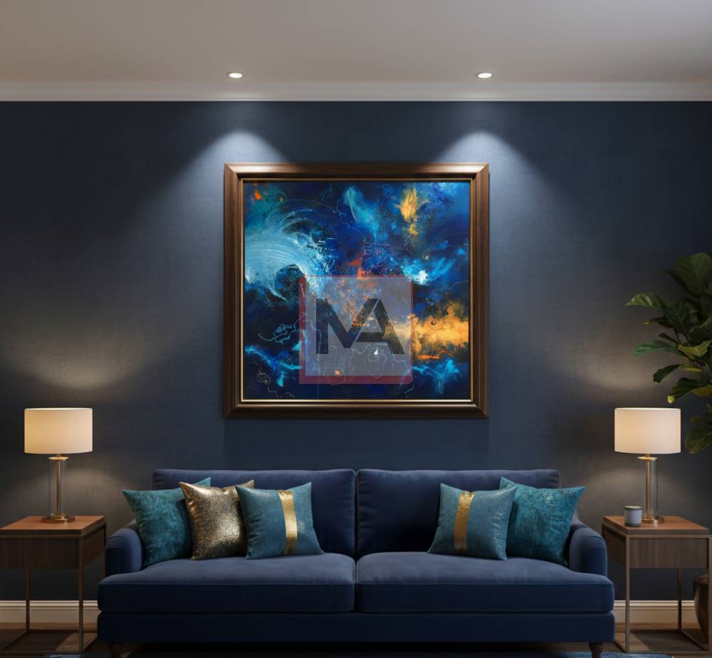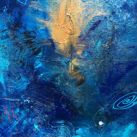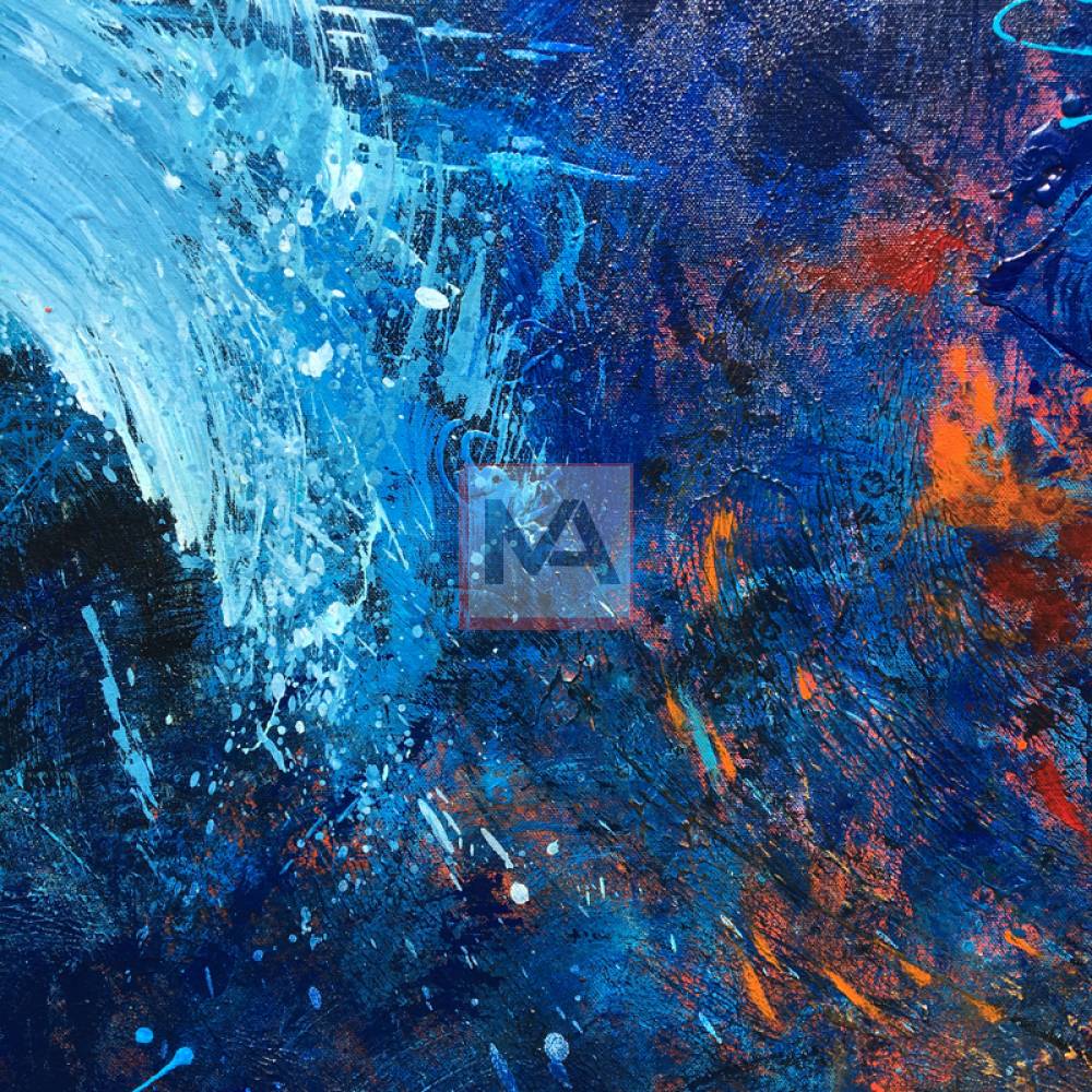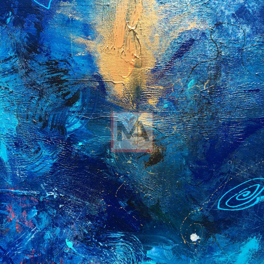 Ocean – The Joy channels the rhythmic pulse of waves in constant motion. Fluid strokes of blues and greens rise and fall across the canvas, capturing the surge and retreat of water. White splashes evoke breaking foam, adding contrast and vitality. Overlapping layers and textures reflect the ocean’s complexity—from gentle ripples to crashing swells. The painting becomes a visual symphony of nature’s power, rhythm, and endless flow.