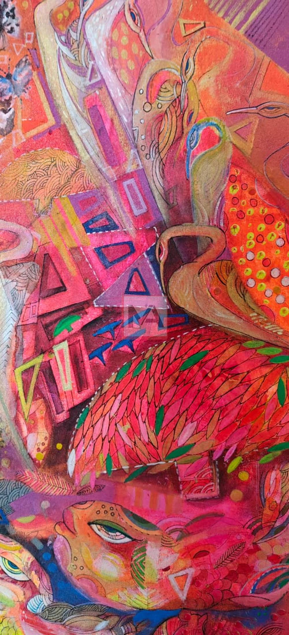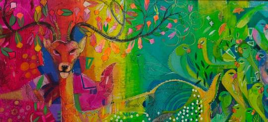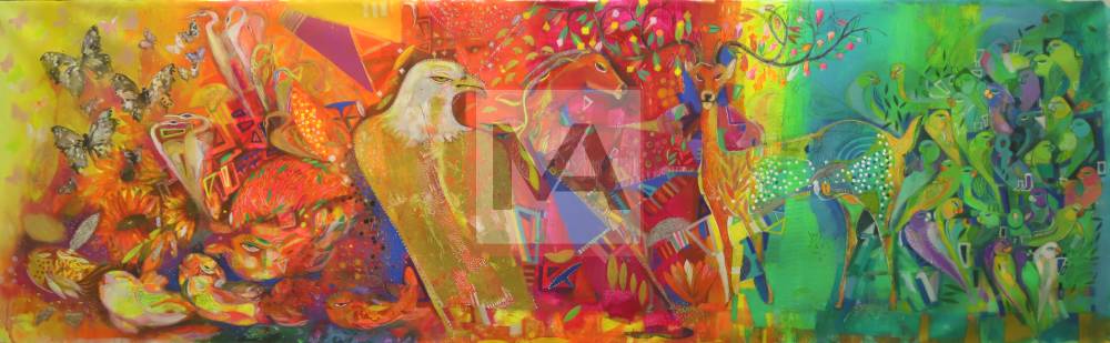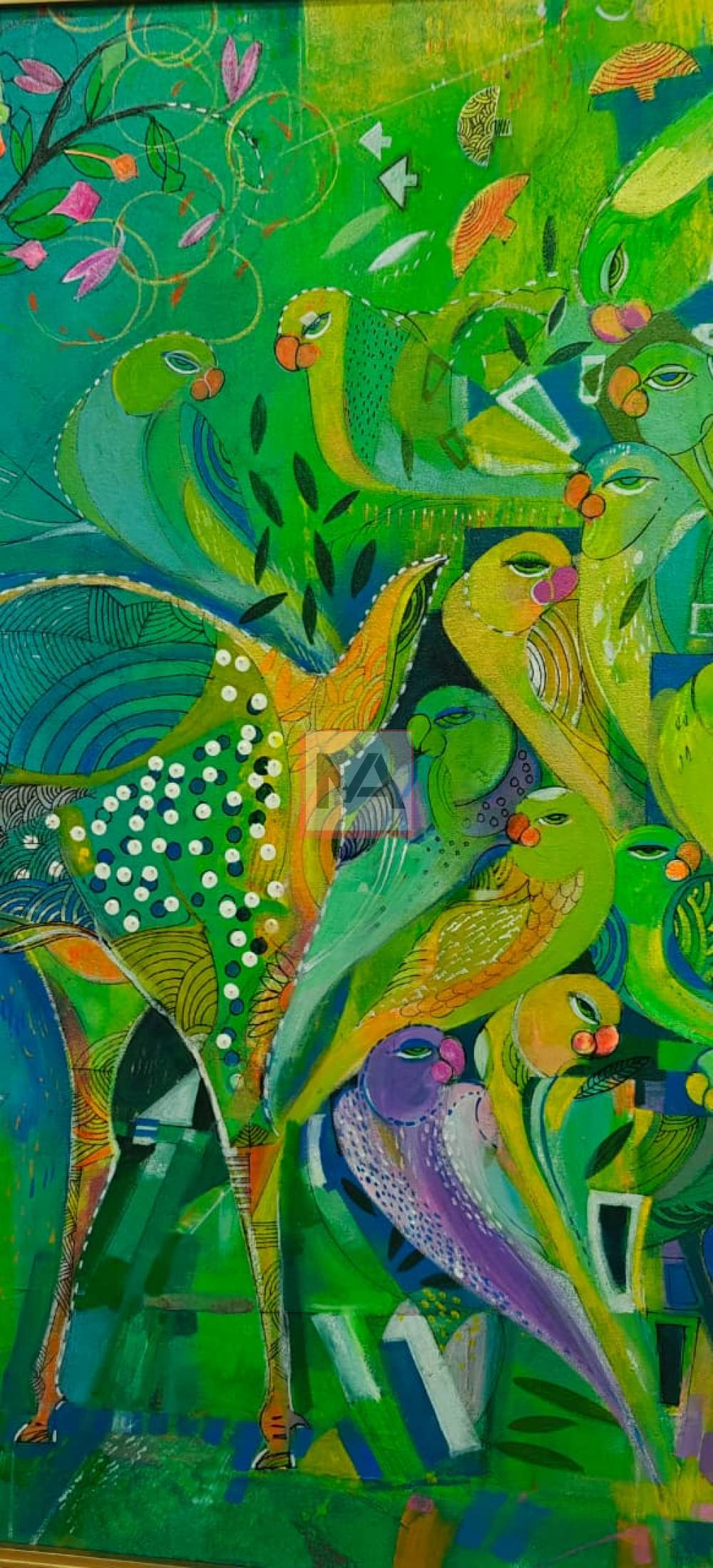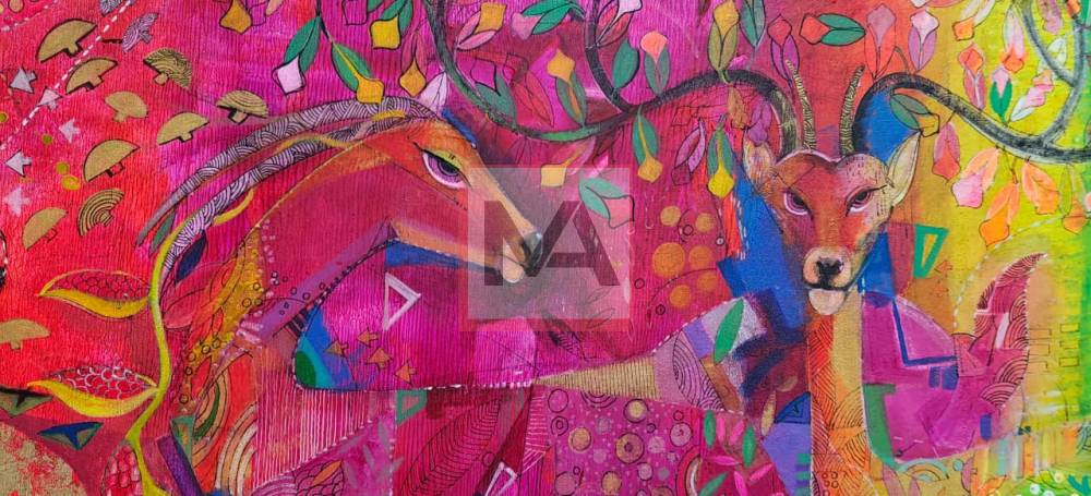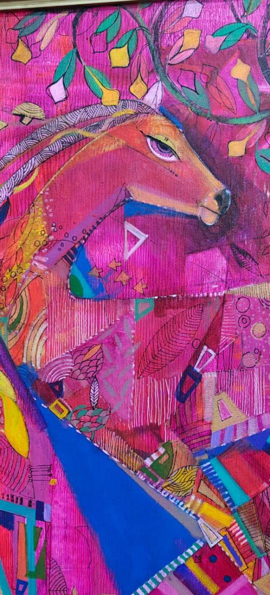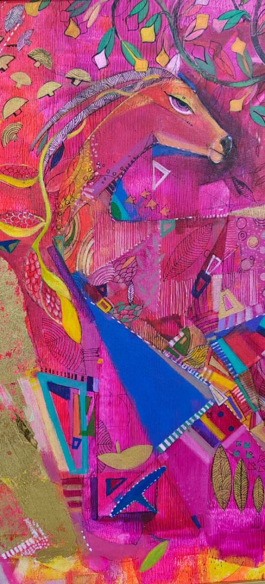 God blessed man with the three layers of mind. When these become in balance and knotted each other then man enters in the enlightened Space.There is no scope for interpretation and charcha only the flow of nectar can be tasted. One loose ones own existence rather become its supplement and segment. In this ocean of nectar man knows himself then he knows the Ek. After seeing the Deer with Kasturi of MadanI could not sleep and the image appeared time and again in my mind . Its first stable look was like a magic ‘Akath Katha' and came like a thunderstorm. Its firm neck is a text of the Vedas which are make -believe that the anxiety of mind is removed by reading., if you fix your mind even for a moment, the self existent Goodwill be in front of you.’ Why the Deer with Kasturi has stuffed his body with flowers and leaves so many other elements from nature. Why its body is enlightened in golden colour. Deer is so alert that his ears can listen from fatal to heaven perhaps the artist is well versed in the concept of Dhavani. Deer says the leaves in his body are the representative of Brahma, Vishnu is in branches and Shiva is in flowers which dominates the head of the Deer. What is this Golden light? Is it an illusion? How am I blessed with kasturi? . Not easy to understand with blind eyes. This is the oil of Truth and the wick of God. Deer admits that he has made his own lamp to enlighten the own body. The enlightened alone can realize it. It is not an illusion rather Truth. Kasturi is the treasure of Fragrance, perhaps preferring to live in the jungle of the Chandan tree. Deer accept his preference for chandan wood tree though its height is small and surrounded by useless trees but its nearness is provider of Fragrance to all the flora and fauna around. Why does he not like to dwell in Bamboo jungle.? It is full of ego because of its height. Even if close to Sandalwood, the Bamboo tree does not become fragrant. Deer with Kasturi do not feel safe near the bamboo jungle as hunters may discover him easily but hardly come close to sandalwood due to snakes. Madan’s Deer is not just a piece of decoration or narrating any epic. His Kasturi Deer is sublime and a discovery of the Self. His image is simple but a panorama of the unlimited divine spirit. It is an unuttered prayer of the Universe.