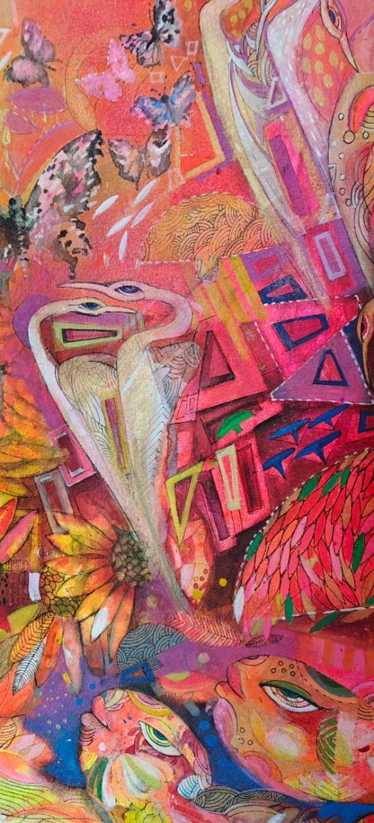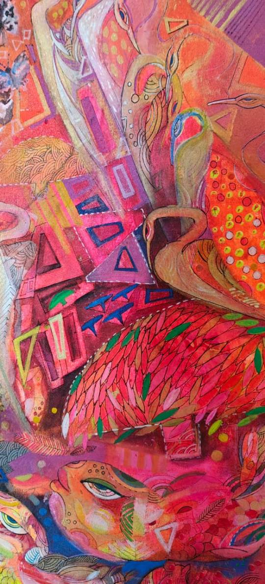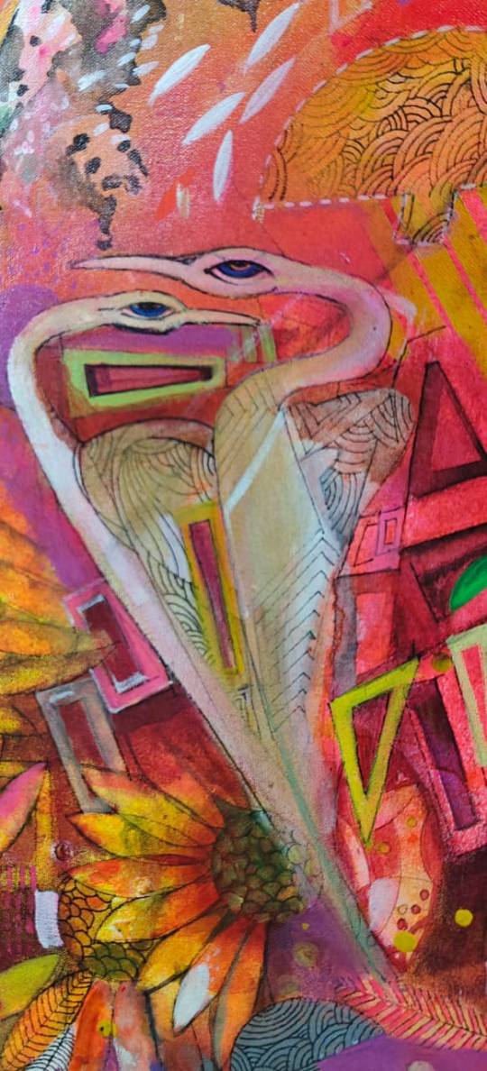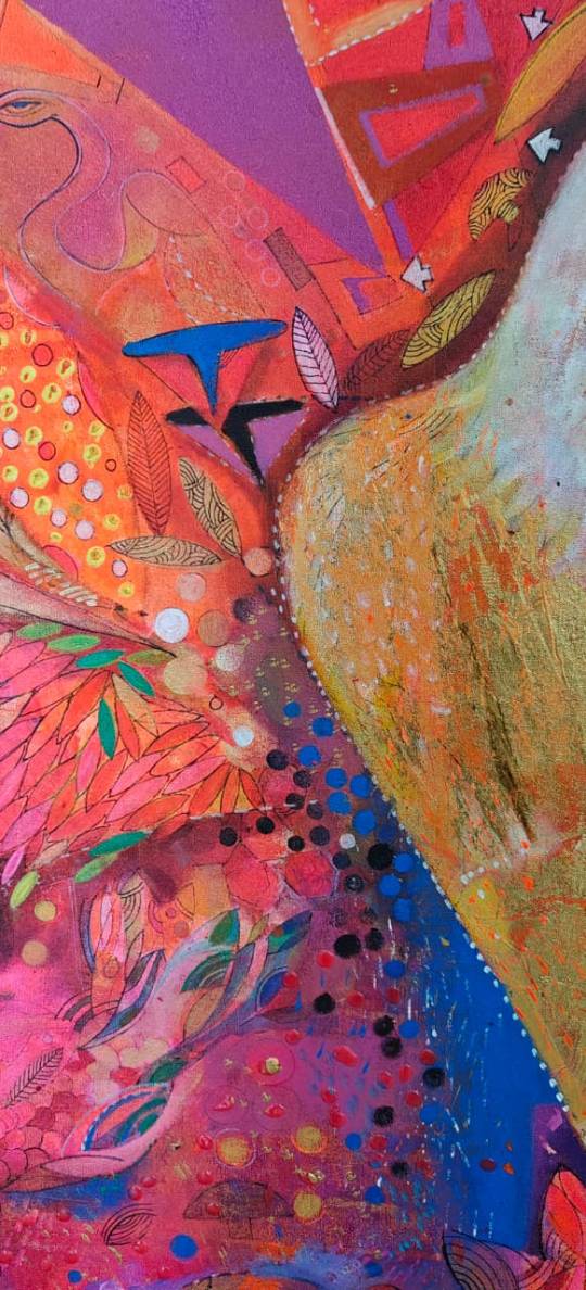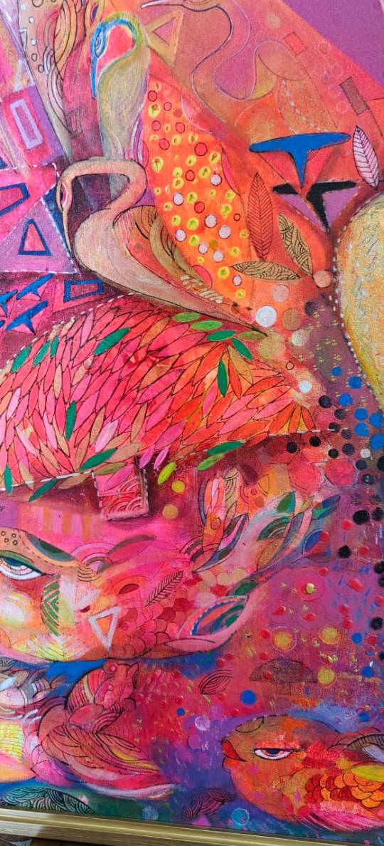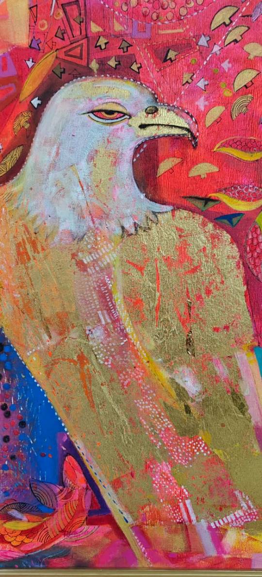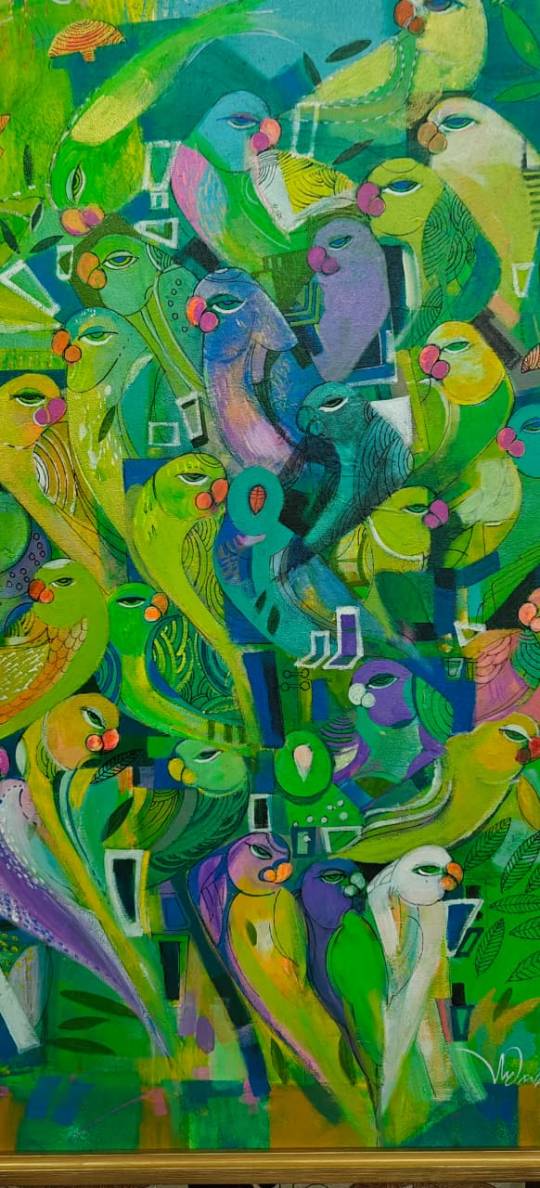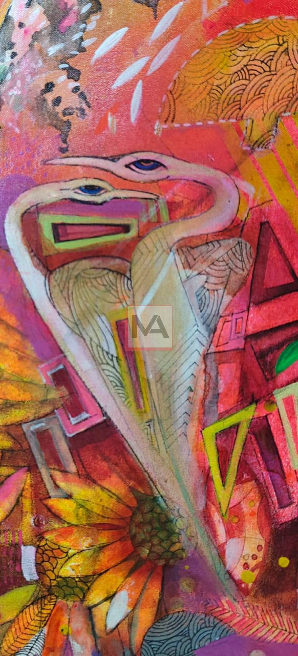 God blessed man with the three layers of mind. When these become in balance and knotted each other then man enters in the enlightened Space.There is no scope for interpretation and charcha only the flow of nectar can be tasted. One loose ones own existence rather become its supplement and segment. In this ocean of nectar man knows himself then he knows the Ek. After seeing the Deer with Kasturi of MadanI could not sleep and the image appeared time and again in my mind . Its first stable look was like a magic ‘Akath Katha' and came like a thunderstorm. Its firm neck is a text of the Vedas which are make -believe that the anxiety of mind is removed by reading., if you fix your mind even for a moment, the self existent Goodwill be in front of you.’ Why the Deer with Kasturi has stuffed his body with flowers and leaves so many other elements from nature. Why its body is enlightened in golden colour. Deer is so alert that his ears can listen from fatal to heaven perhaps the artist is well versed in the concept of Dhavani. Deer says the leaves in his body are the representative of Brahma, Vishnu is in branches and Shiva is in flowers which dominates the head of the Deer. What is this Golden light? Is it an illusion? How am I blessed with kasturi? . Not easy to understand with blind eyes. This is the oil of Truth and the wick of God. Deer admits that he has made his own lamp to enlighten the own body. The enlightened alone can realize it. It is not an illusion rather Truth. Kasturi is the treasure of Fragrance, perhaps preferring to live in the jungle of the Chandan tree. Deer accept his preference for chandan wood tree though its height is small and surrounded by useless trees but its nearness is provider of Fragrance to all the flora and fauna around. Why does he not like to dwell in Bamboo jungle.? It is full of ego because of its height. Even if close to Sandalwood, the Bamboo tree does not become fragrant. Deer with Kasturi do not feel safe near the bamboo jungle as hunters may discover him easily but hardly come close to sandalwood due to snakes. Madan’s Deer is not just a piece of decoration or narrating any epic. His Kasturi Deer is sublime and a discovery of the Self. His image is simple but a panorama of the unlimited divine spirit. It is an unuttered prayer of the Universe.