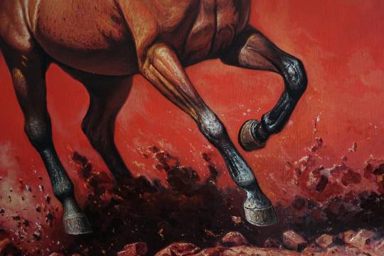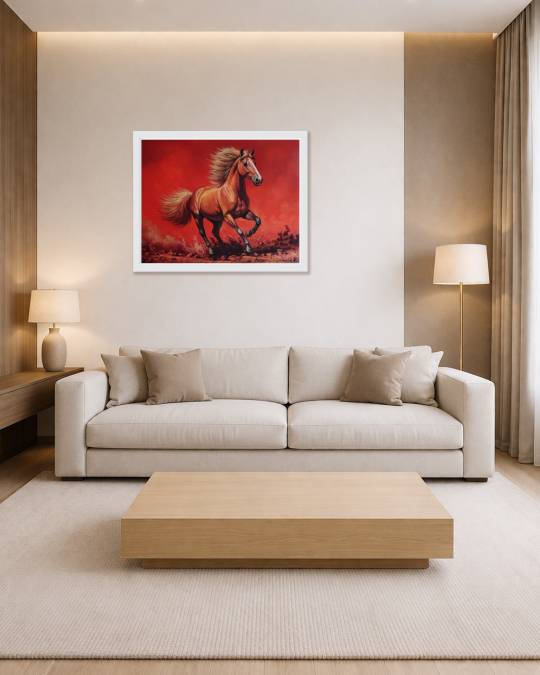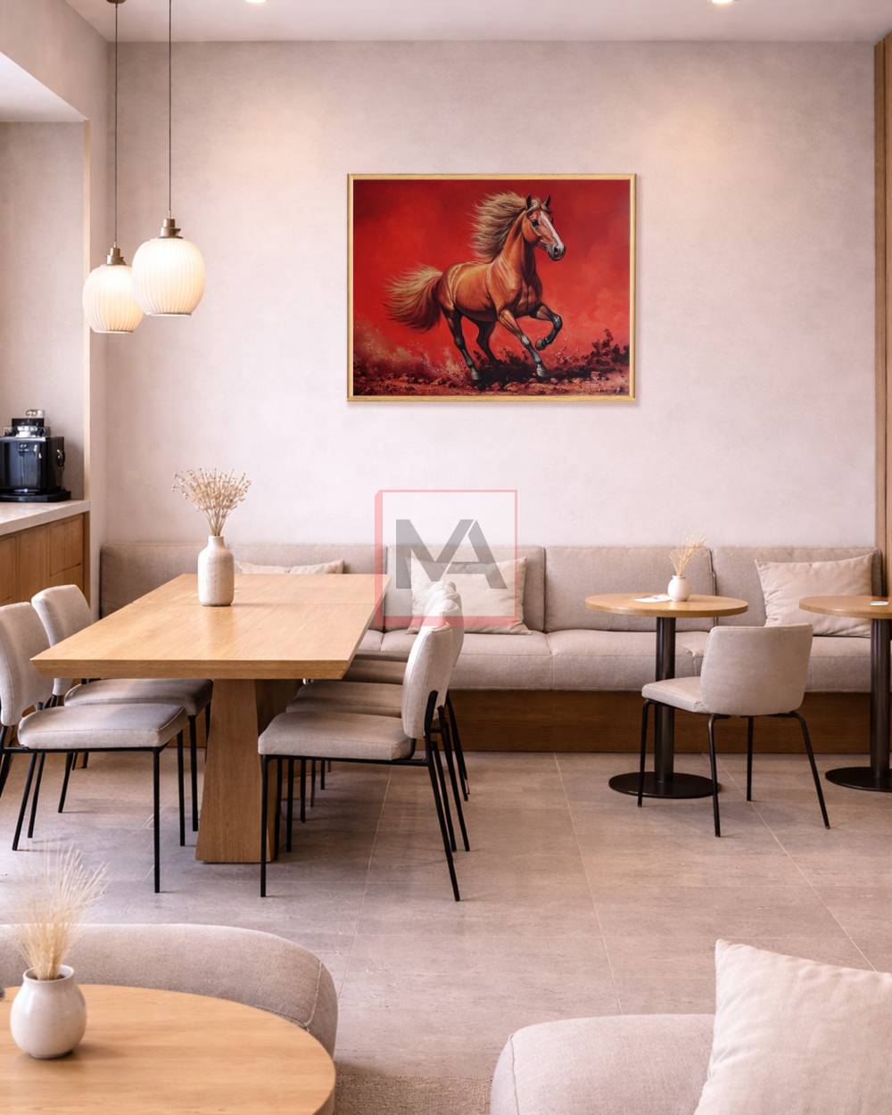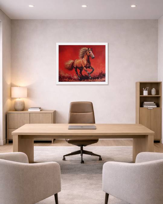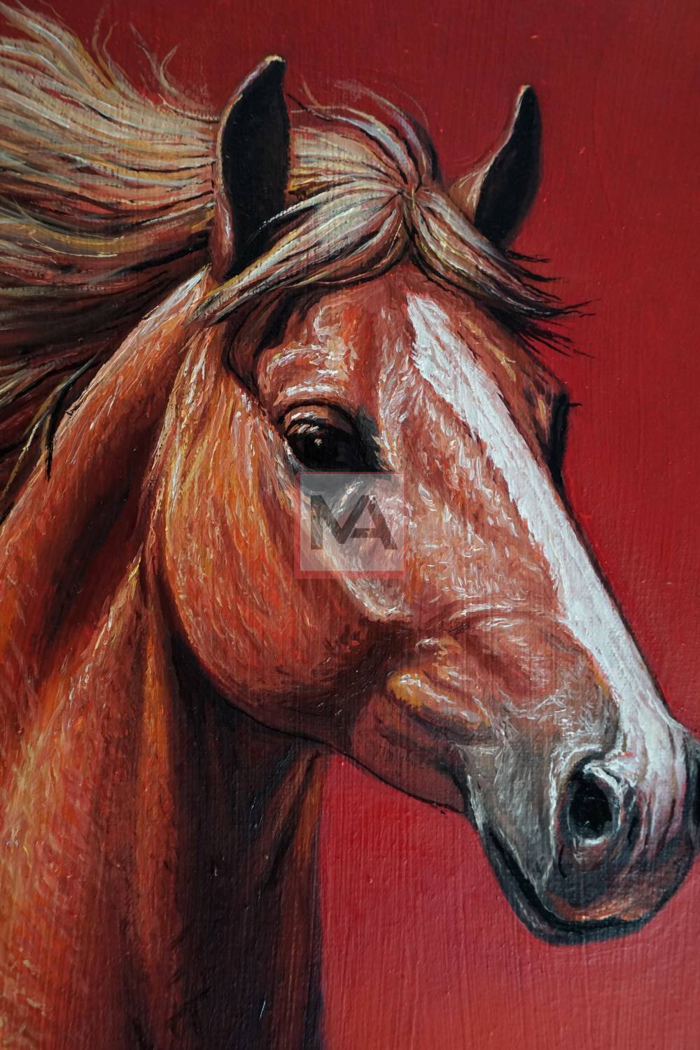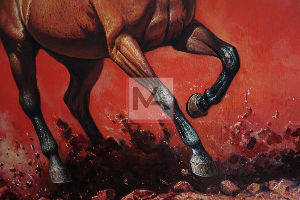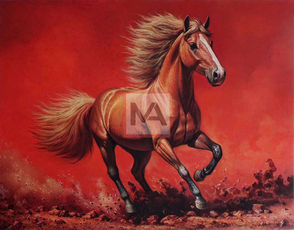 This work captures the essence of the horse as a symbol of spirit, strength, and elegance. Through expressive brushstrokes, the artist conveys the dynamic energy and graceful presence of this majestic animal.