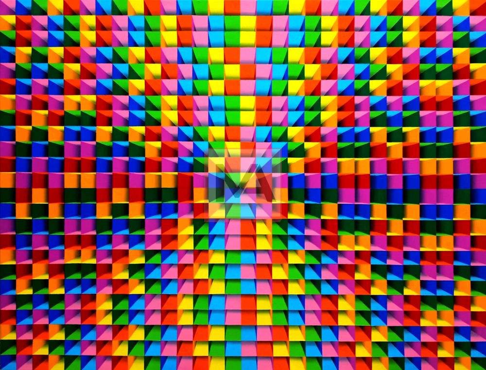 Springtime unfolds as a vibrant exploration of color and geometry, intuitively composed in rhythmic balance. The interplay of structured forms and luminous tones captures the renewal and freshness of the season, radiating joy and positive energy throughout the pictorial space.