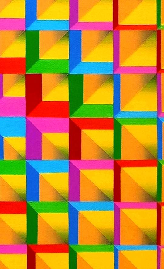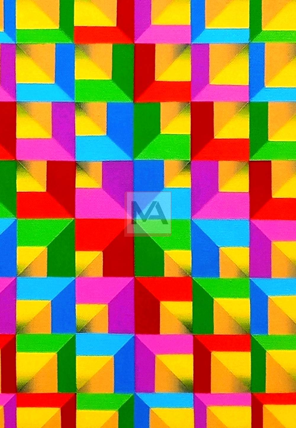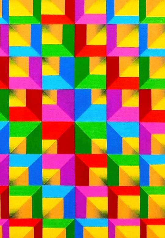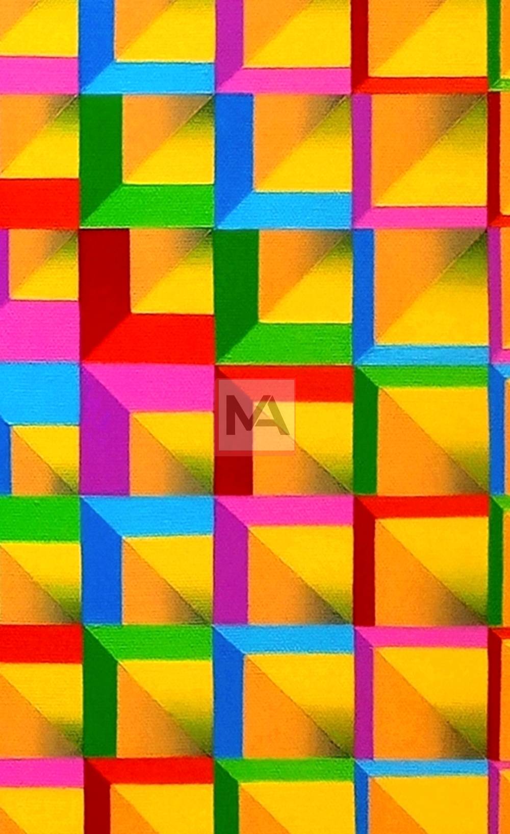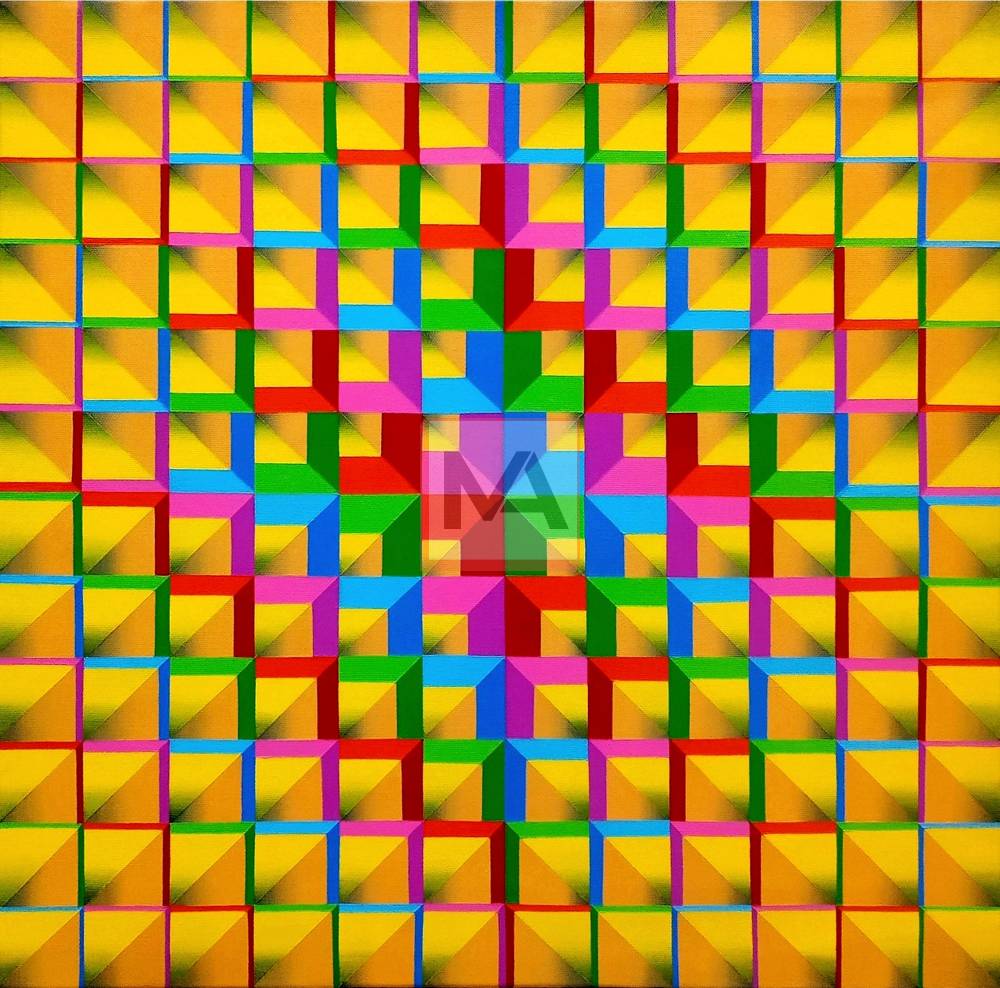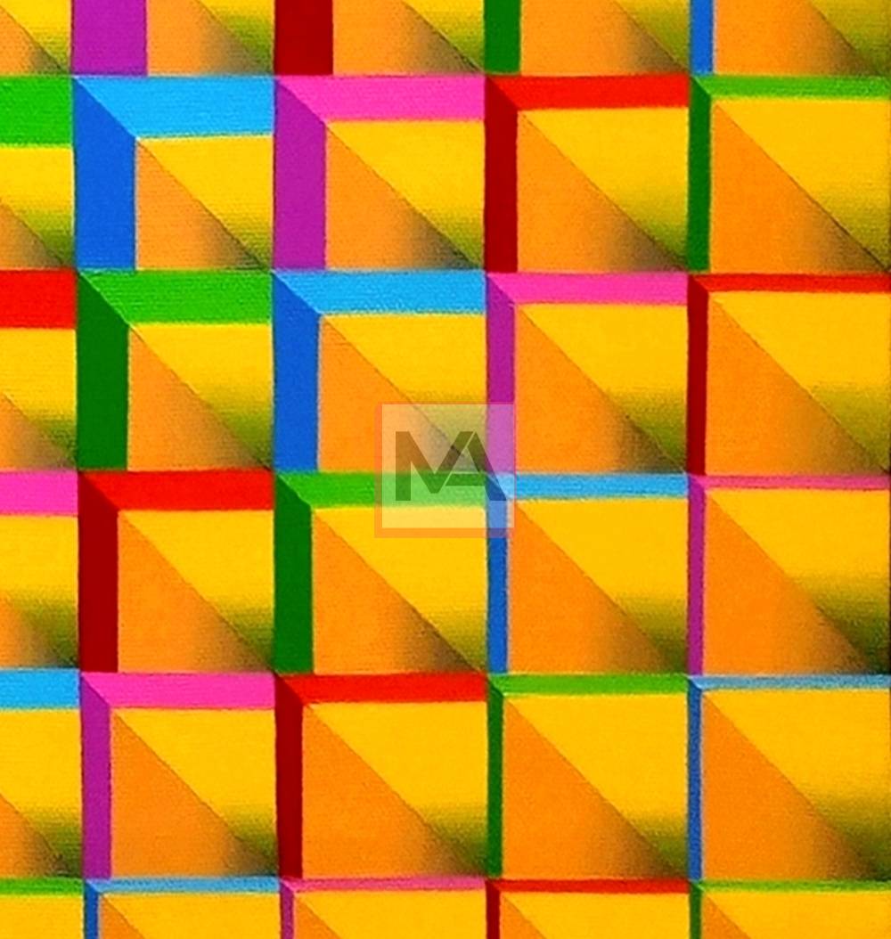 Summertime expresses the vibrant radiance of the season through luminous yellows and a spectrum of bright, energetic hues. The interplay of color creates a rhythmic dynamism within the pictorial space, evoking warmth, vitality, and the pulsating energy of summer days.