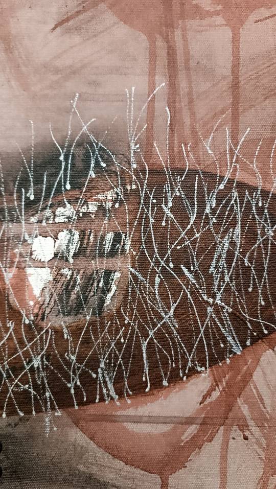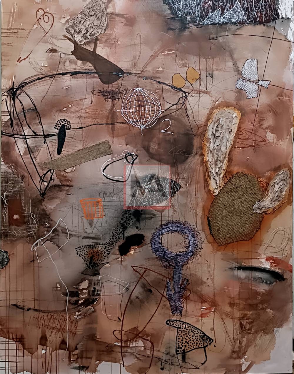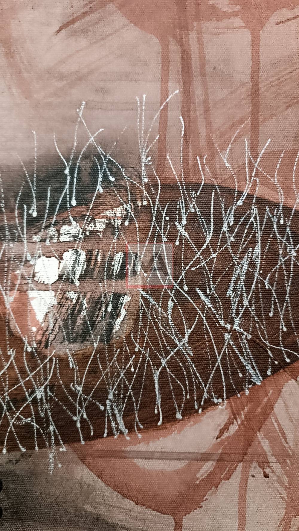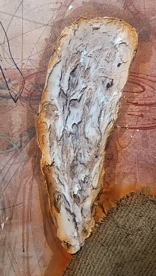 About Forest and Oxygen by Sri Pramono reflects the vital relationship between forests and oxygen as sources of life. Using layered earthy tones—brown, cream, gray, and black—along with expressive lines and textured marks, the work evokes nature’s respiration, portraying the forest as a living, breathing system that sustains ecological balance.